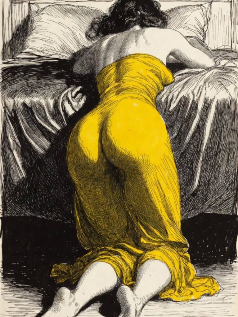A nude figure, exaggerated body parts, direct sexuality — nothing is hidden, softened, or symbolic in the way we’re used to today.